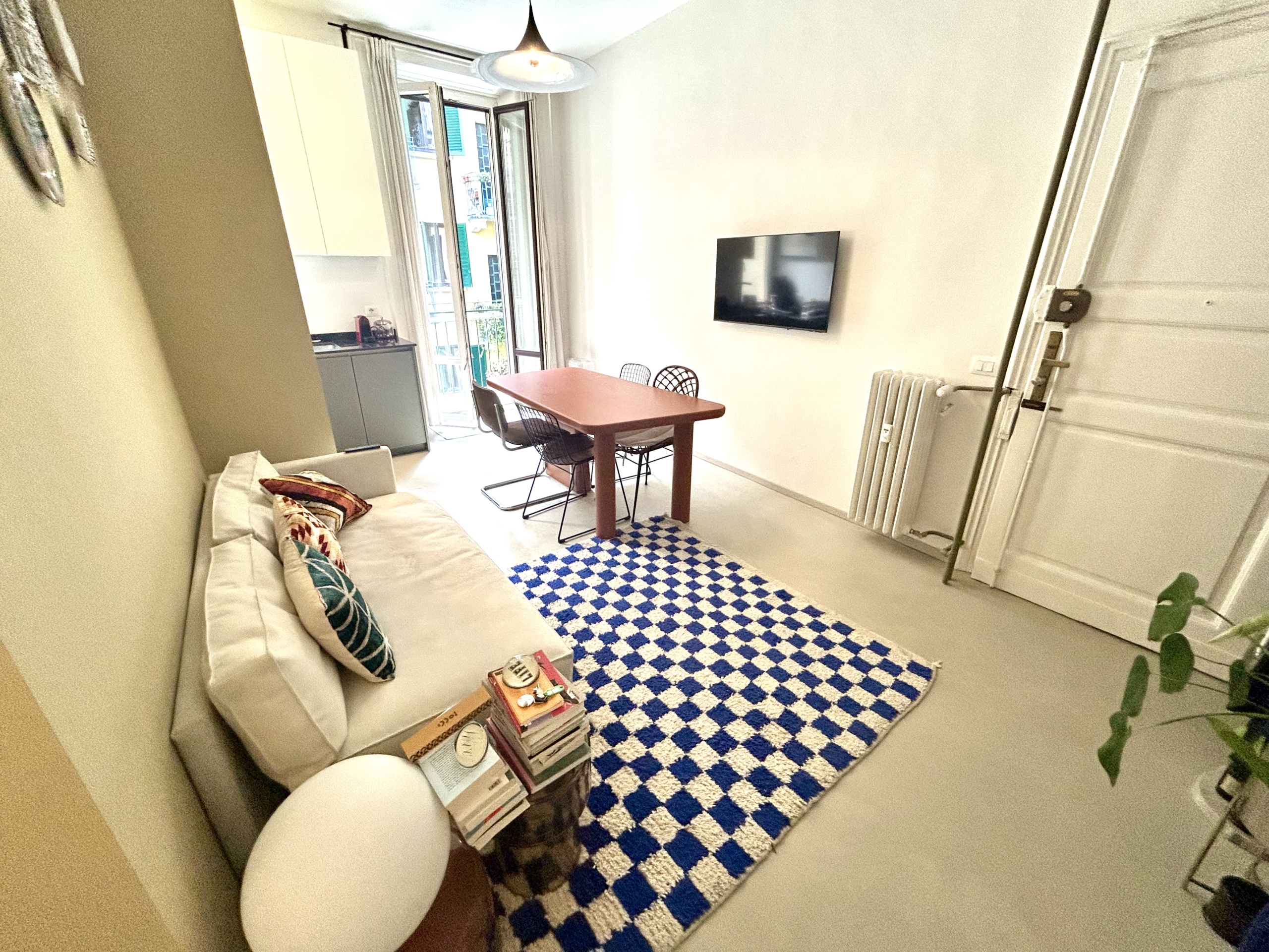 NoLo – Via Giulio e Corrado Venini in una delle zone più dinamiche e vivaci di Milano centro autentico della città a pochi passi dalle fermate della metropolitana MM1 Pasteur e Loreto vicino alla stazione centrale, in stabile anni 30 carente di ascensore ma con lievi scale da affrontare proponiamo bilocale completamente arredato che è stato oggetto di una completa ristrutturazione il contesto e le finiture, così come gli impianti, sono di ottima qualità e di grande impatto visivo e funzionale dotato di complementi di arredo esclusivi per chi ama il design come la cucina su misura Veneta Cucina, lampade di flos, Artemide e Danese Milano, tavolo Opera Prima Firenze realizzato su misura e rifinito in resina Kerakoll ecc. La perfetta disposizione interna degli spazi razionalmente ben distribuiti sviluppa l’immobile con un living d’ingresso che accoglie la cucina servito dal balcone, disimpegno che conduce all’ampio bagno con doccia, ariosa camera matrimoniale; i pavimenti sono in resina e parche’ d’epoca trattato. Esposizione soleggiata, cortile con spazio parcheggio biciclette.